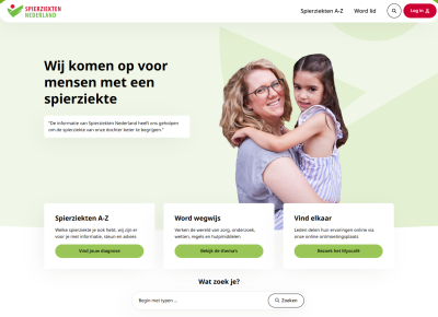 De website is het vertrekpunt voor alles wat Spierziekten Nederland biedt en doet. Jaarlijks worden de pagina’s in totaal maar liefst ruim twee miljoen keer bekeken. Met de jaren was de hoeveelheid informatie op de website enorm gegroeid en wel zó flink, dat bezoekers regelmatig de weg niet (meer) vonden. Om dat te verbeteren lanceerde de vereniging in 2025 een geheel vernieuwde website.